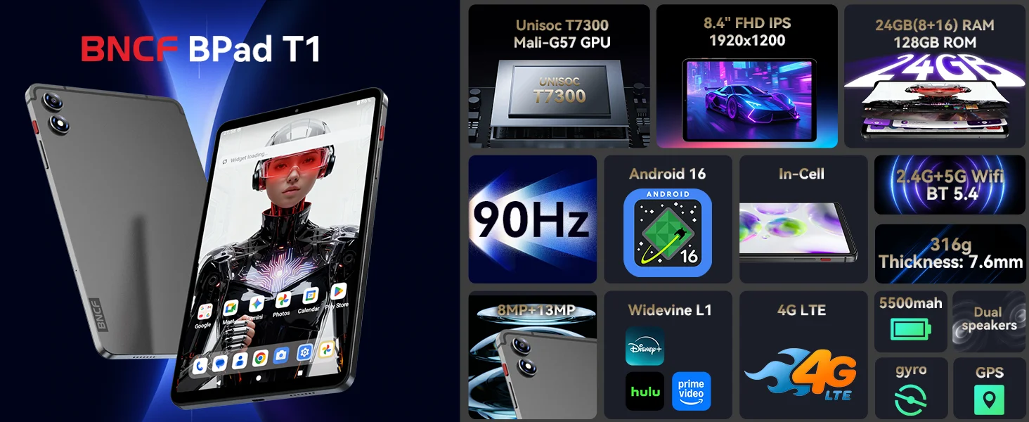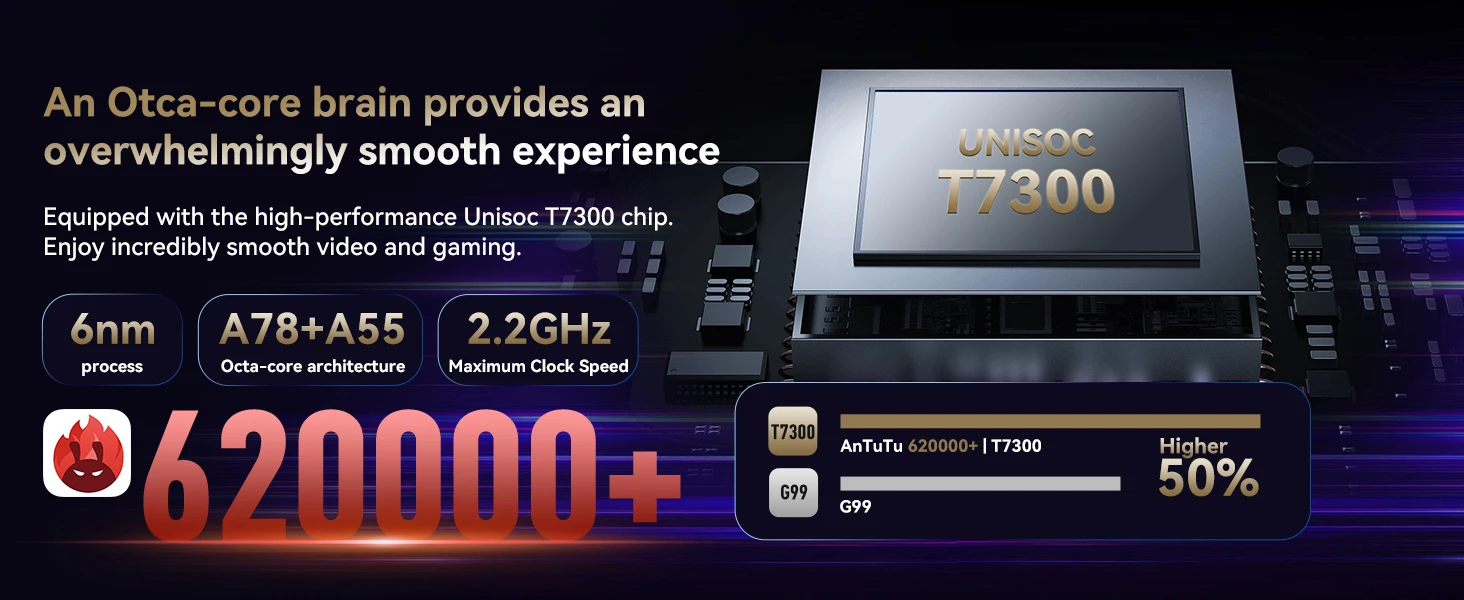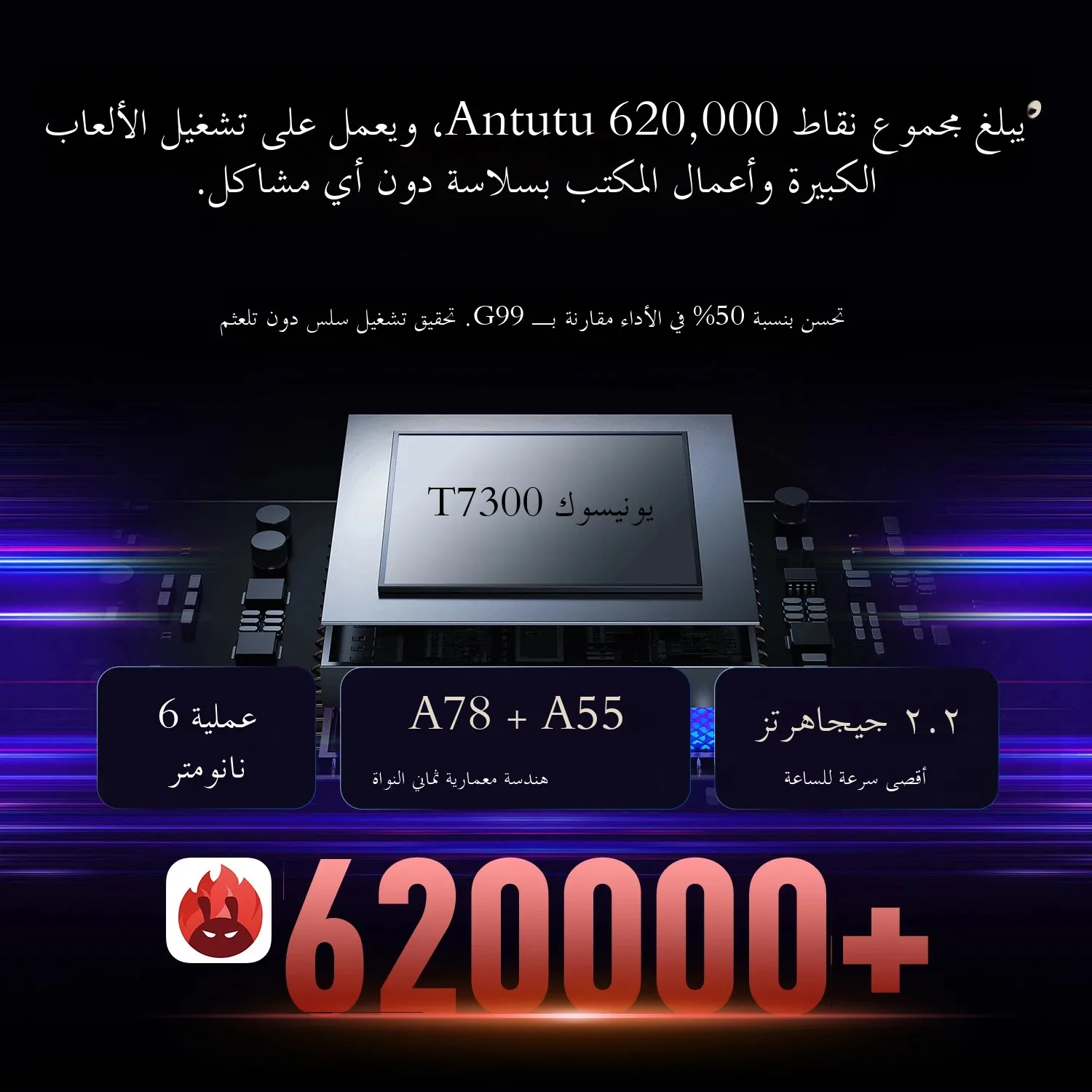 مدعوم بمعالج Unisoc T7300، يوفر هذا الجهاز اللوحي أداءً سلسًا وكفاءة في تعدد المهام.
