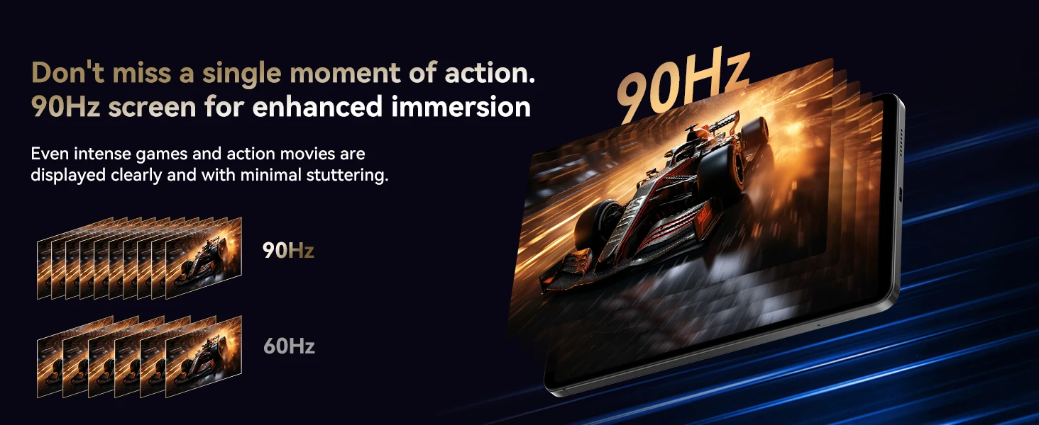 اختبر تجربة تصفح وتشغيل سلسة مع معدل تحديث 90 هرتز للجهاز اللوحي، مما يعزز تجربتك العامة كمستخدم.