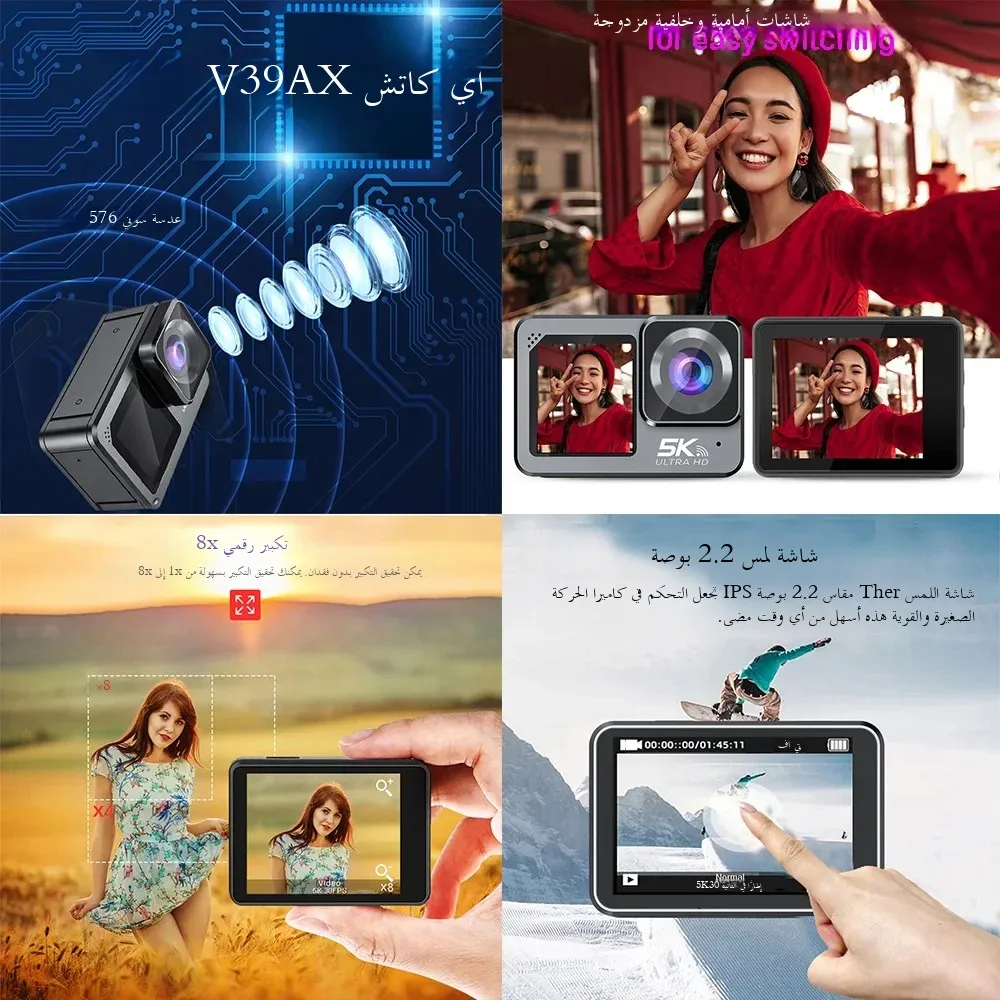 ●5K فائقة الوضوح●48 ميجابكسل● زاوية واسعة 170D● مقاوم للماء 30 م●شاشة مزدوجة● واي فاي● 8Xzoom