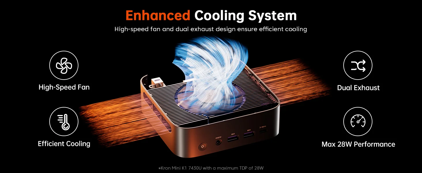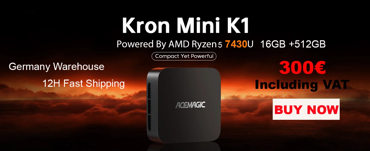 كامروي كرون ميني K1 AMD ميني بي سي Ryzen 7430U، ميني جهاز كمبيوتر للألعاب بذاكرة 16GB DDR4 وقرص صلب SSD بسعة 512GB، أجهزة كمبيوتر صغيرة مكتبية مدمجة تدعم عرض ثلاثي بدقة 4K / WiFi6 / BT5.2 للألعاب / المكتب / المنزل.