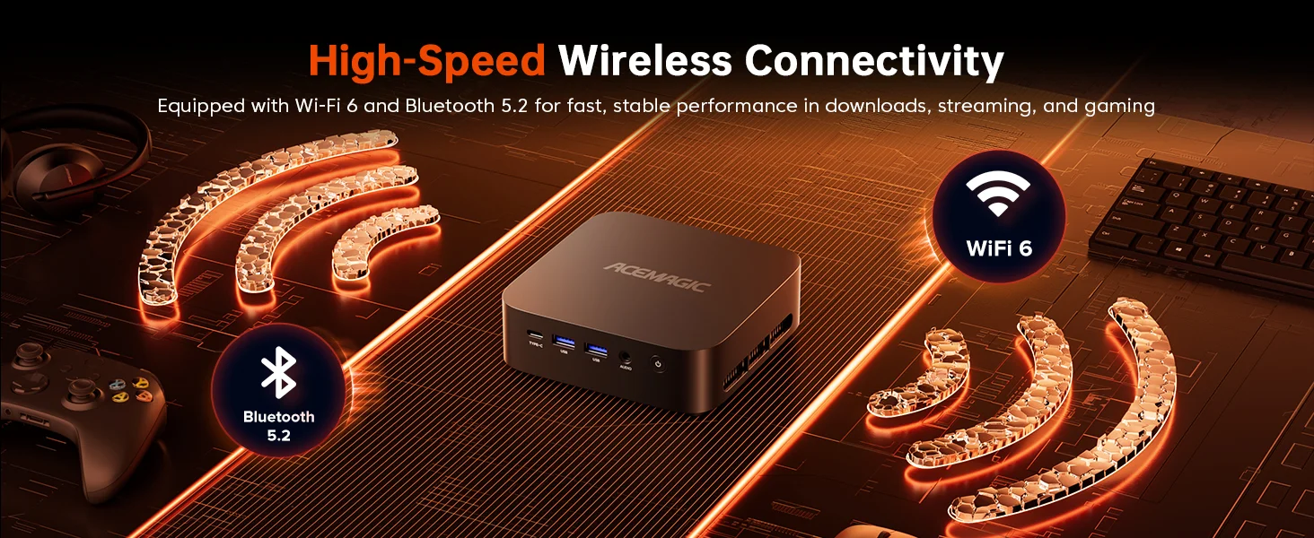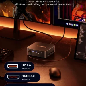 【تصميم فريد لجهاز كمبيوتر صغير】يتميز الكمبيوتر الصغير للأعمال بتصميم ذو ملمس مصقول، مما يبرز تفرده وجودته.يأتي الكمبيوتر المكتبي الصغير مزودًا بحامل VESA، مما يسمح بتركيبه خلف الشاشة أو تحت المكتب أو على الحائط، مما يوفر مساحة سطح المكتب. 【شاشة ثلاثية بدقة 4K UHD】يتضمن الكمبيوتر المكتبي الصغير وحدة معالجة رسومات AMD Radeon RX Vega7 بسرعة 1800 ميجاهرتز، مما يوفر قدرات معالجة رسومات قوية.وهو يدعم مرئيات 4K مذهلة ويمكنه تشغيل ثلاث شاشات في وقت واحد لمهام متعددة والألعاب والمزيد. 【واي فاي 6 ومنافذ متعددة】تم تجهيز الكمبيوتر الصغير بتقنية WiFi 6 وBluetooth 5.2، مما يتيح سرعات نقل بيانات تصل إلى 1000 ميجابت في الثانية دون القلق بشأن التأخير.