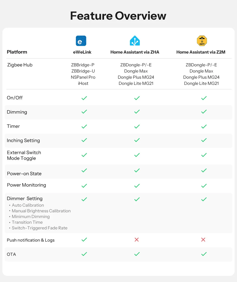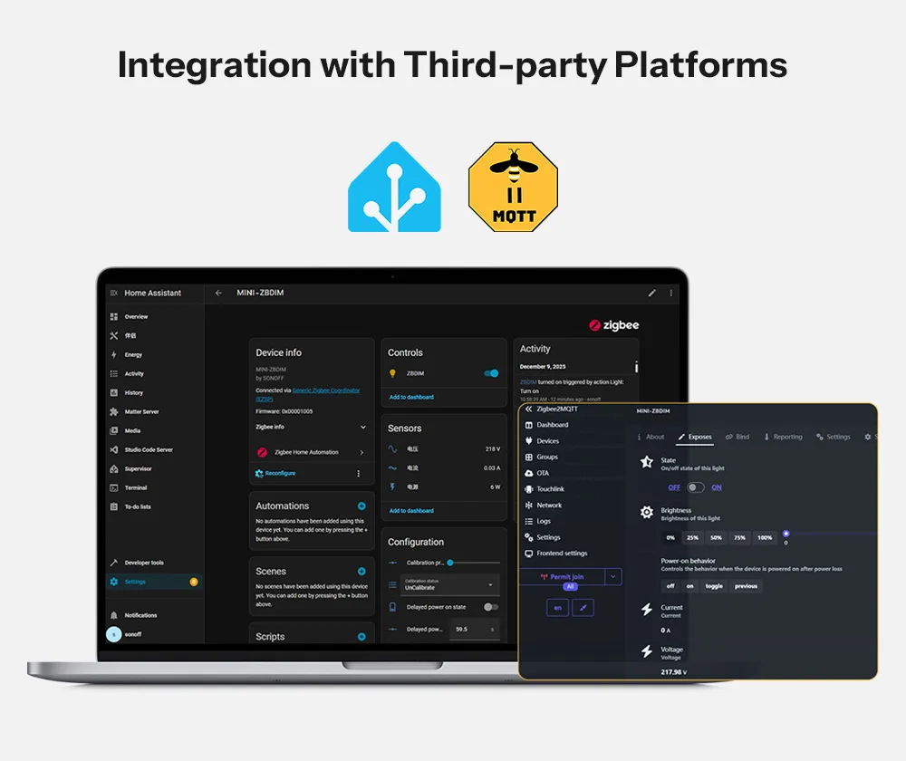 MINI-ZBDIM هو مفتاح ذكي يعمل بتقنية Zigbee مصمم للتحكم في الإضاءة بشكل موثوق ومرن.يدعم مجموعة واسعة من الأحمال، بما في ذلك مصابيح LED القابلة للتعتيم، والمصابيح المتوهجة والهالوجينية، والمحولات الإلكترونية، ويمكنه التكامل بسلاسة مع أليكسا، ومساعد جوجل، وIFTTT.بفضل التعتيم السلس والمستقر، ومراقبة الطاقة في الوقت الفعلي، والحماية المتقدمة من ارتفاع الحرارة، وإعدادات المشاهد الذكية، ودعم التحكم الصوتي عبر التطبيقات، يوفر MINI-ZBDIM إدارة إضاءة آمنة وذكية وسهلة.