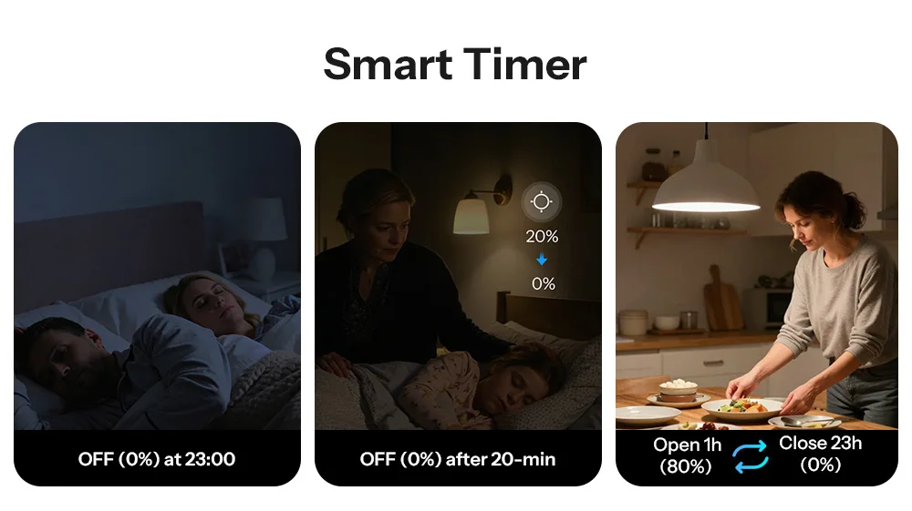 قم بتعيين المهام الموقّتة، المؤجلة، والمتكررة حسب الرغبة لتحقيق التحكم الذاتي في الإضاءة.