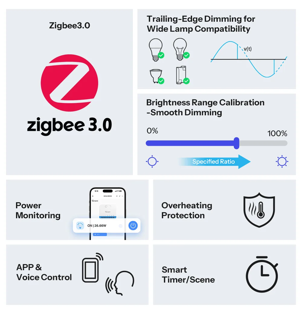 سونوف ميني-ZBDIM مفتاح تعتيم ذكي بتقنية زيغبي المتقدمة توافق واسع مع أنظمة الإضاءة مراقبة استهلاك الطاقة في الوقت الفعلي حماية من ارتفاع درجة الحرارة