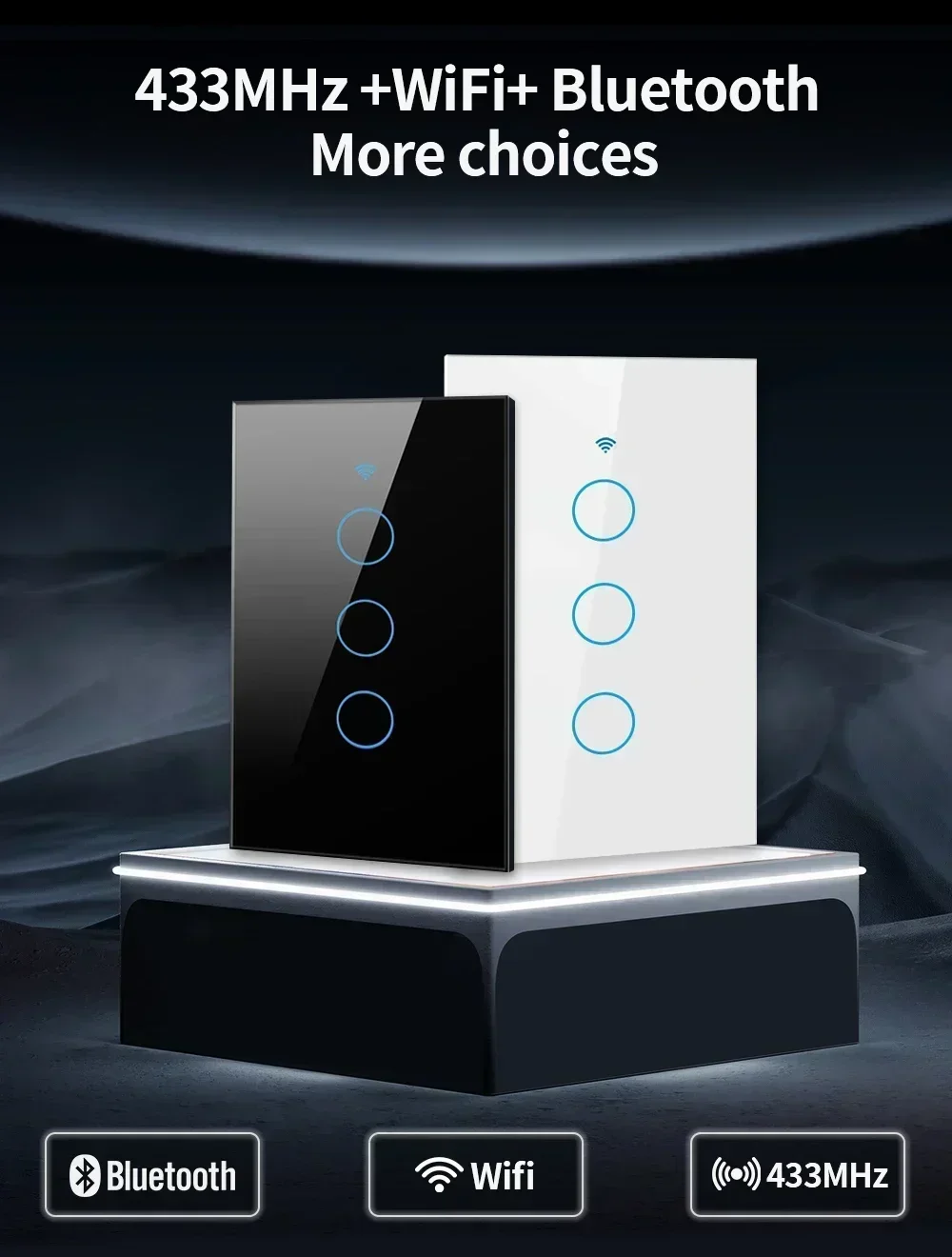يمكن التحكم به عن طريق wifi أو البلوتوث، يمكن للبلوتوث أن يجعل المنتج يتصل بالهاتف الخلوي بشكل أسرع. يمكنك التحكم في المفتاح باستخدام منتج يدعم 433 أو شبكة لاسلكية.